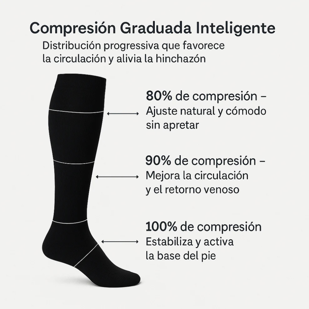 Alivio instantáneo para piernas cansadas e hinchadas – compresión inteligente 2 veces más efectiva.
