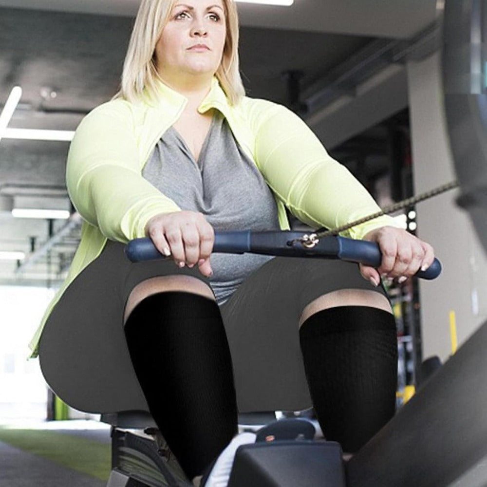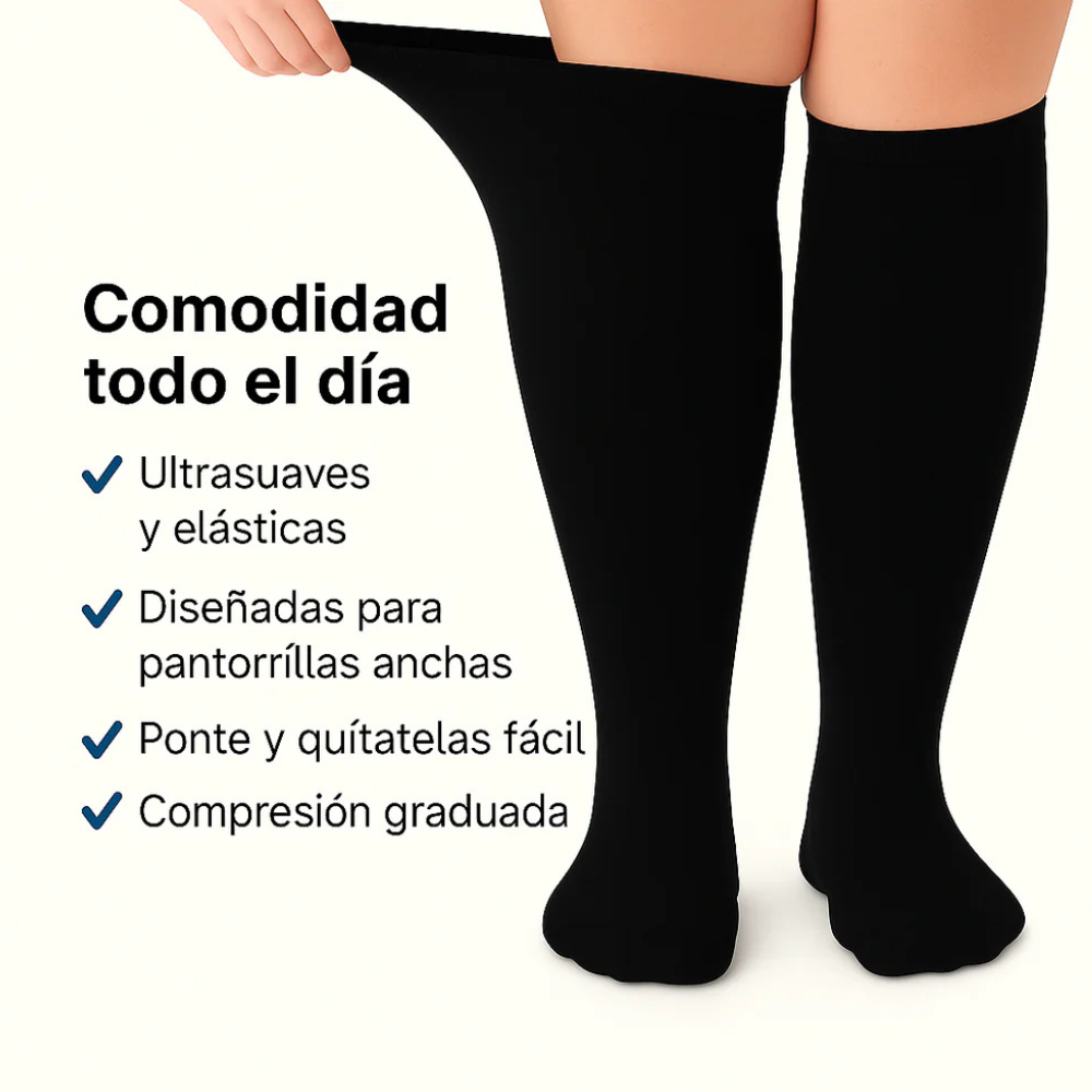 Su estructura ergonómica se adapta a pantorrillas anchas, ofreciendo una compresión suave, efectiva y agradable que estimula la circulación sin apretar ni limitar tus movimientos.